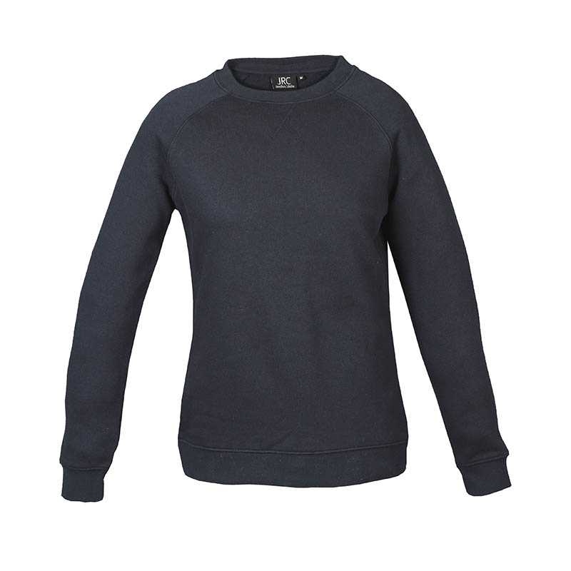 lehce vypasovaný střih s bočními švy, vnitřní část průkrčníku začištěna páskou v barvě vrchového materiálu, raglánové rukávy s dvojitým prošitím, dolní lem, manžety a průkrčník z žebrového úpletu 1:1 s 5 % elastanu, vnitřní strana nepočesaná.Výplňková ple