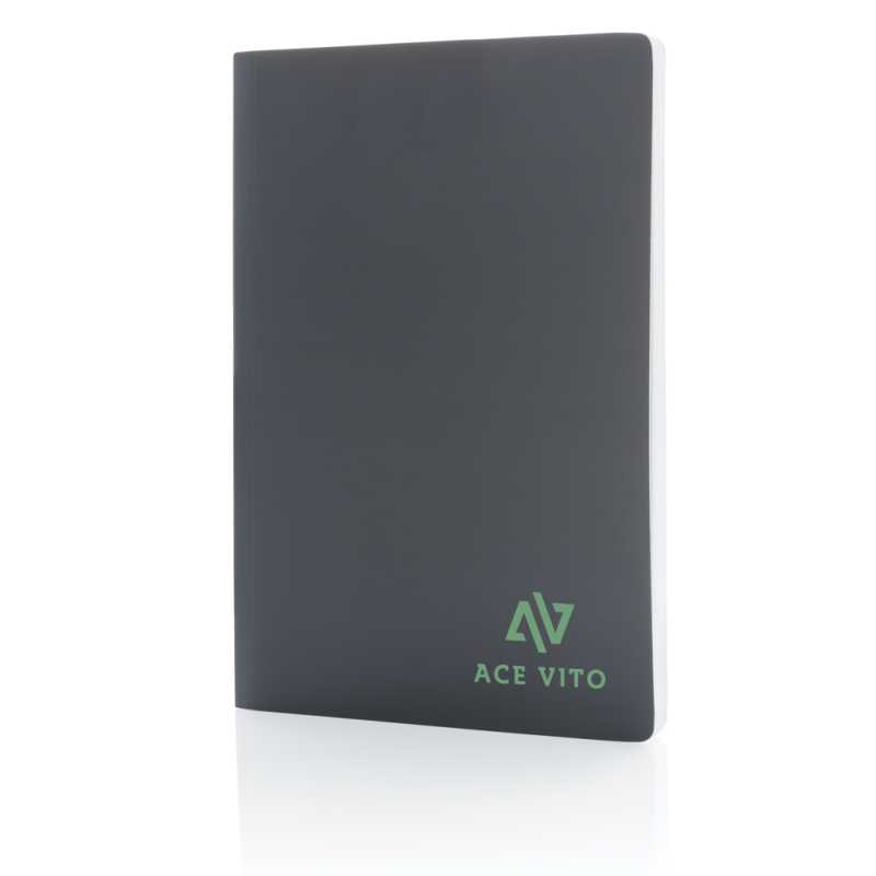 Zápisník s měkkou flexibilní obálkou (velikost A5) s integrovaným elastickým uzávěrem, stužkou na založení stránky, smyčkou na pero, kapsou na dokumenty na vnitřní zadní obálky a 80 listy (80g papíru) krémového papíru. Baleno v černém pouzdru.
