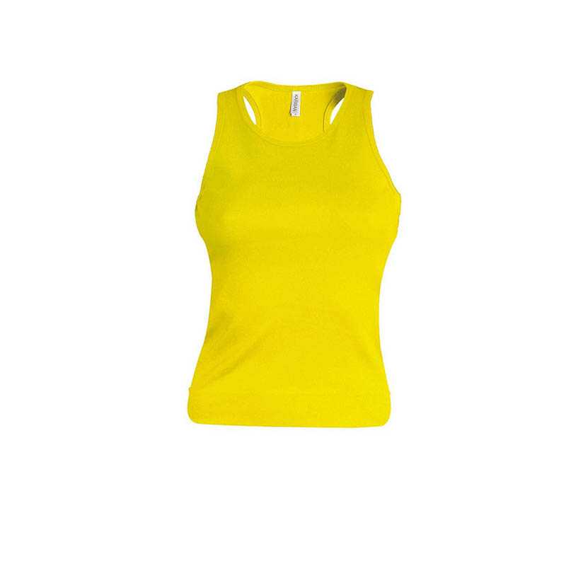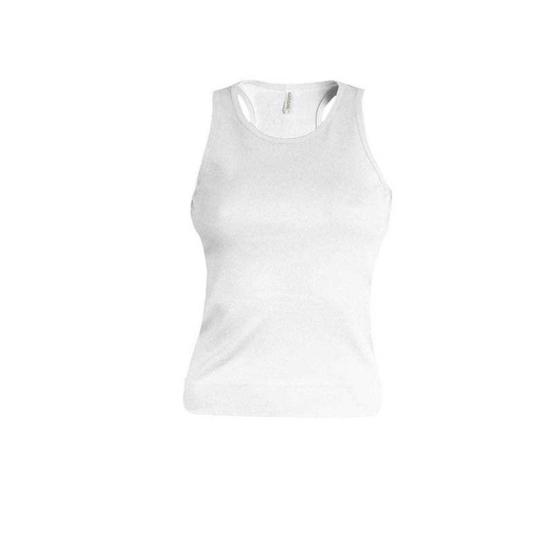 hladký rychleschnoucí materiál, lehce vypasovaný střih s bočními švy, vykrojený zadní díl tílka (racerback), hlubší kulatý výstřih, průkrčník a průramky lemovány vrchovým materiálem, ideální pro sport a pohybové aktivity, vhodné pro sublimační potisk (svě