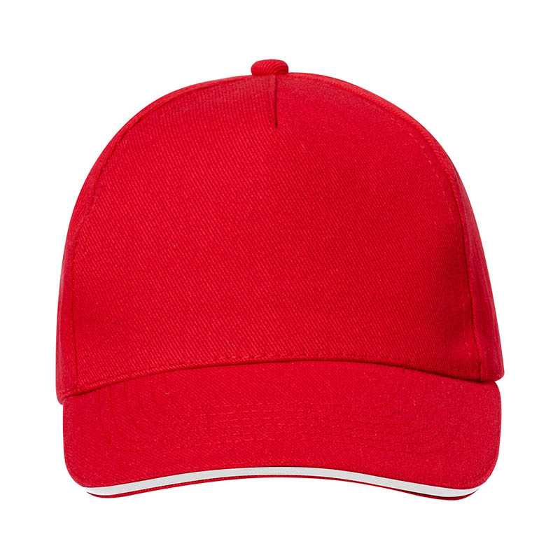 8-panel cap. 100% cotton. Twill. 180 g/m2. One size. 4 opennings for ventilation, embroidered in the same color. Inner seam cover in the same color. Adjustable Velcro closure. Top butt