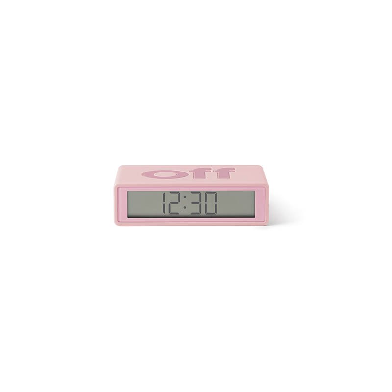 Mini reversible travel alarm clock - ON/OFF faces - LCD electroluminescent display - Touch control to snooze and light display Power supply: 2 AAA batteries (included) - Material: rubber / ABSSuggested branding: silkscreen - digital printing