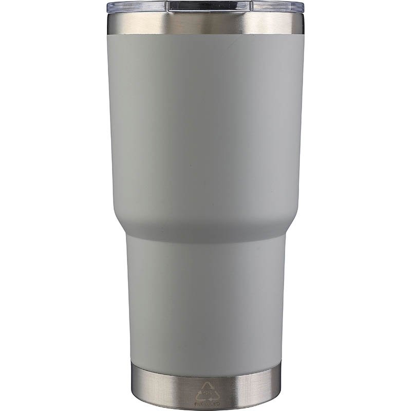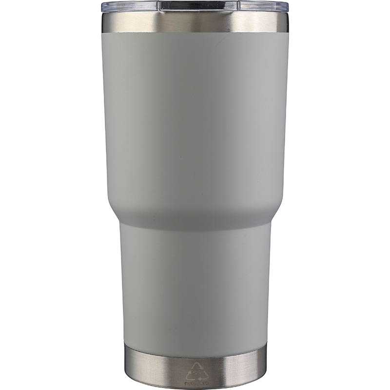 NOVINKA 2025. Stainless steel double-walled mug (590 ml) with PS lid. Recycled logo engraved on the mug. The interior is made of stainless steel 304, and the exterior is stainless steel 201. Individually packaged in a brown cardboard box.