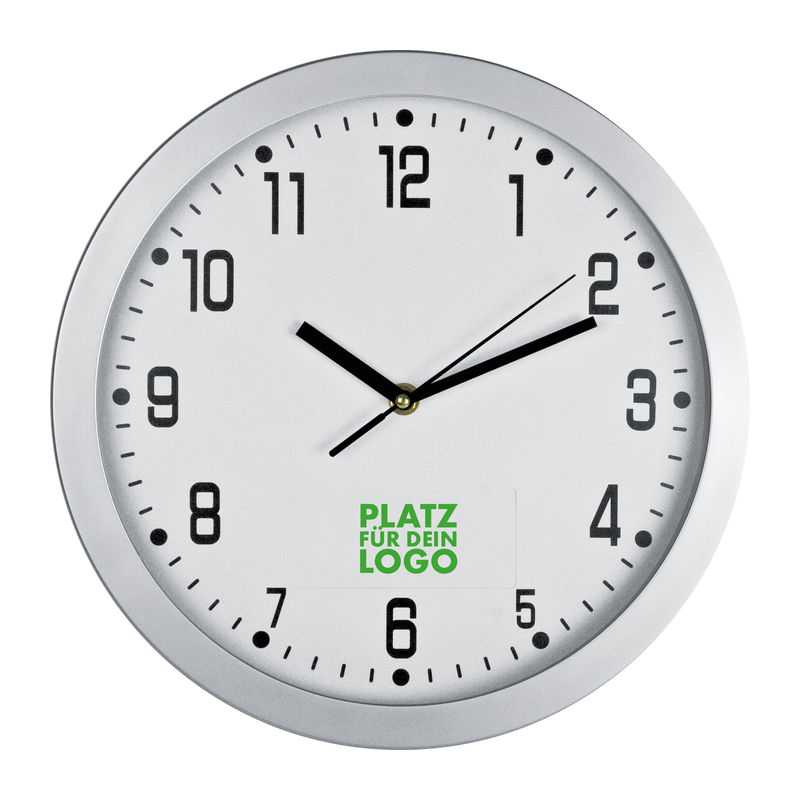 Kovové hodiny na stěnu s jednoduchým a elegantním designem. Logo může být vyryto na přední straně hodin. Vyžaduje 1 kus AA baterie, která není součástí článku.