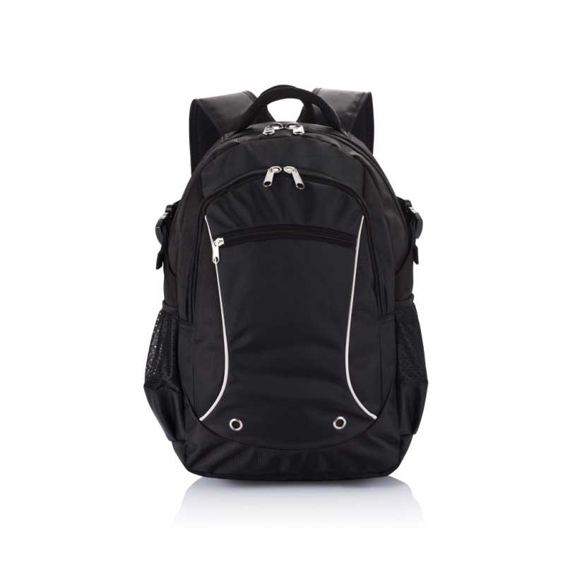Batoh na notebook z žakáru 840D a 300D polyesteru se dvěma přihrádkami. Zadní část má podšívku a je polstrovaná. Součástí jsou dvě polstrované kapsy na notebook do velikosti 15.6" a tablet 10.5". Přední přihrádka je vybavena podšívkou a má několik vnitřních kapes. Má 3 přední kapsy a 2 boční kapsy. Zadní část je polstrovaná, má polstrovanou opěru a polstrované popruhy. Kapacita je až 25 l. 320 x 450 x 190 mm