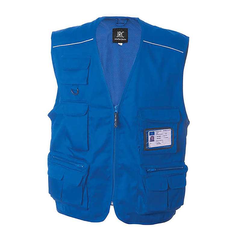 "Waistcoat in cotton canvas/polyester - Mesh lining liftable for easy customization - Chest pocket with fold-away badge-pocket - Reflective thin band - Mobile pocket - Double pen holder - Two outside pockets with buttons, one with two patch pockets - Remov"