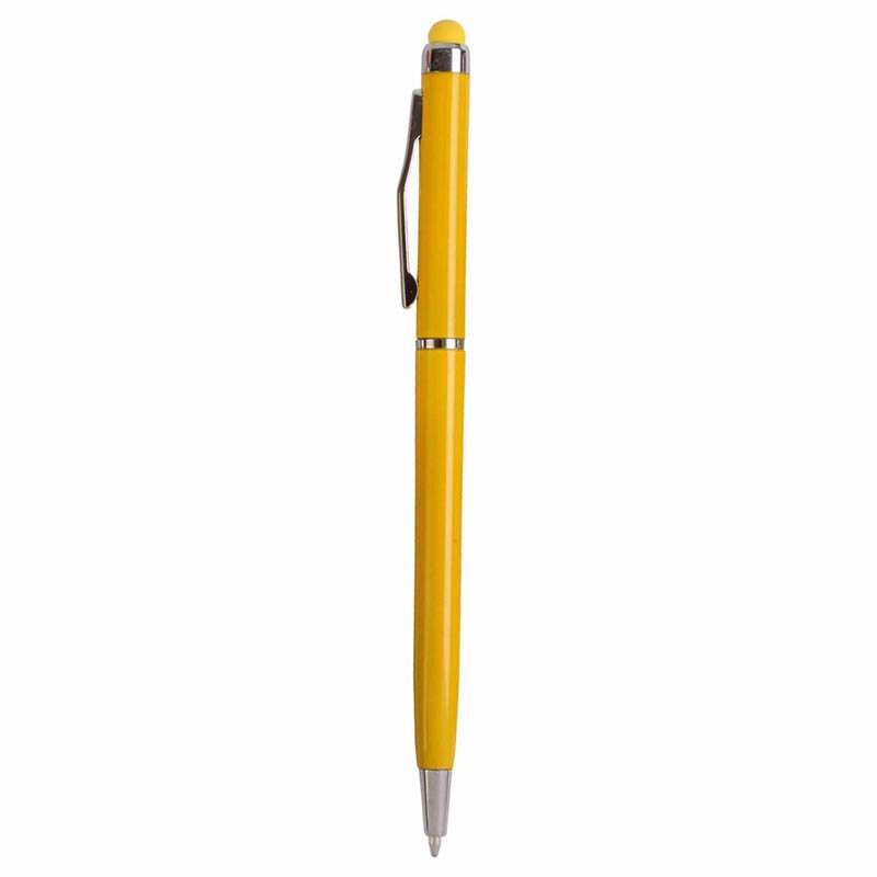 Plastic twist pen with touchscreen rubber tip and metal clip