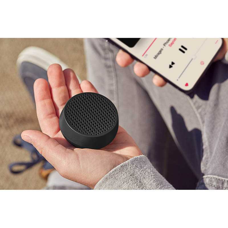 Pocket-sized 3W Bluetooth® speaker - Pairable via TWS - Rechargeable Hands-free mic - Selfie control - Playtime: 3h - Charging time: 1h Rechargeable on USB-C port (cable included) - Material: ABS Suggested branding: silkscreen