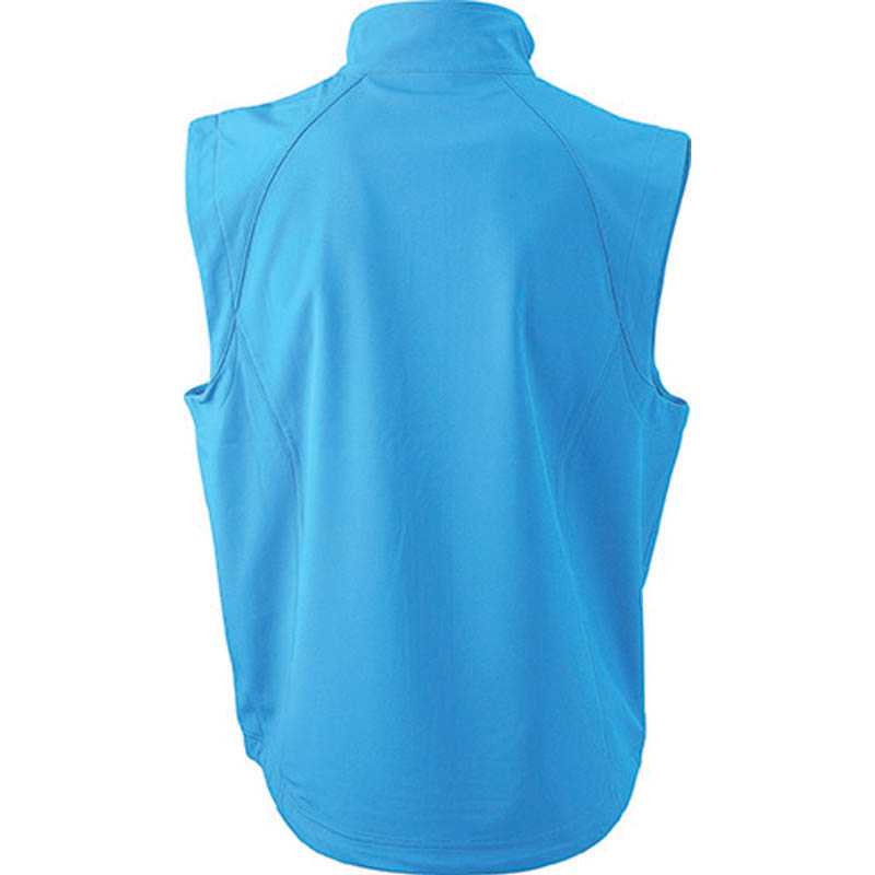 Stylová pánská softshellová vesta James & Nicholson..Vnější materiál: 90% polyester, 10% elastan.Větru a vodě odolná vrstva 3 funkční textilie s PU membránou (2.000 mm vodního sloupce) .Prodyšná (2.000 g / m2 / 24 h) .Měkká, sportovní pružná textilie .2 b
