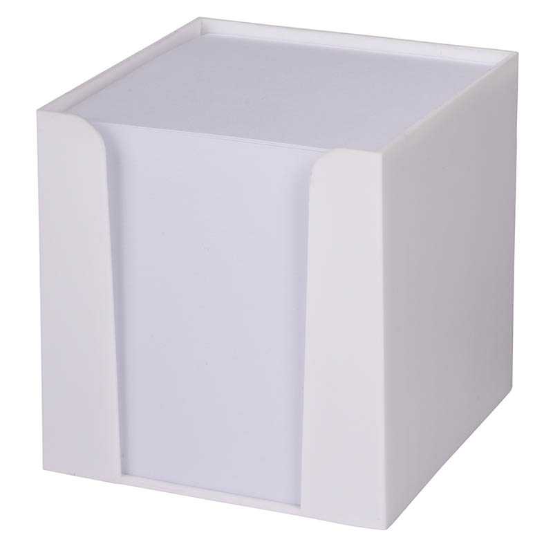 Memo cube NEVER FORGET: plastic box with large opening and 900 white, wood-free sheets (80 g/m2) – Made in Europe