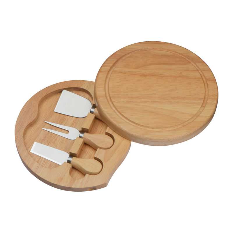 Dřevěná sada na servírování syrů. Obsahuje desku na krájení, dva různé kráječe na sýr a vidličku. Odsunutím vrchní části jsou pomůcky jednoduše dostupné. Způsob potisku gravírování.