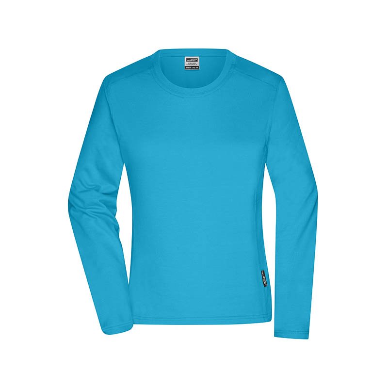 Classy long sleeve pullover for women, made of very soft polyester-viscose-elastane-blend. brushed outside, slim self-fabric collar, neck tape, side seams, small size label in the collar, care label in the side seam Weight: 210 g/m2 Fit: Casual Fit Sizes: S-XL ( Size Charts) Box unit: 24 / carton