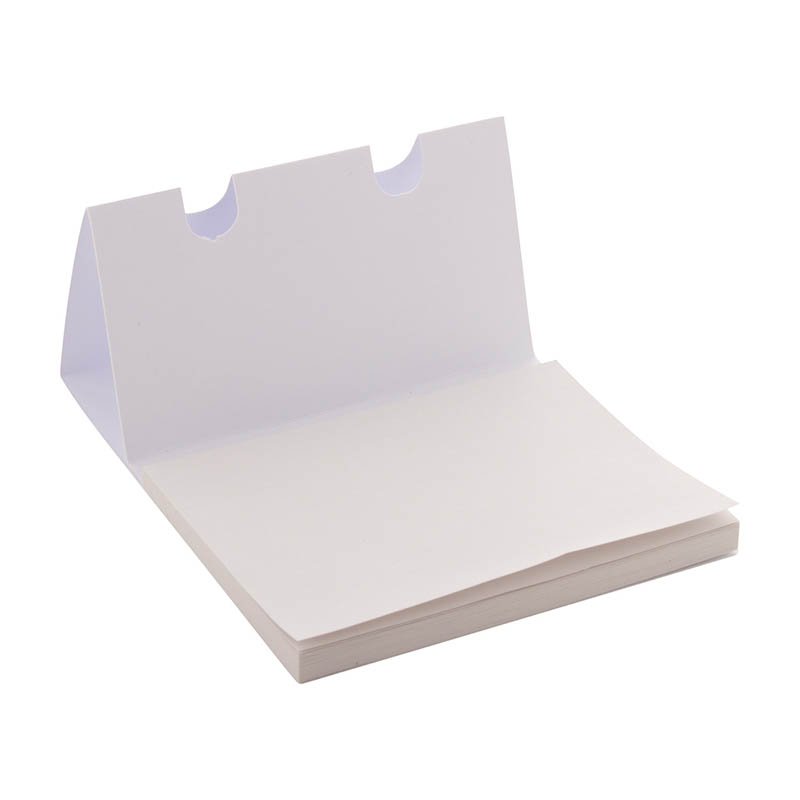 Na zakázku vyrobený papírový stojánek na pero se samolepícími lístky. Obsahuje 50 listů samolepicích lístků z recyklovaného papíru (100×75 mm). Cena je včetně plnobarevného potisku na horní straně, nezahrnuje tiskovou přípravu. Min. mn.: 100 ks.