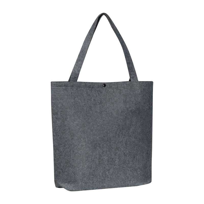 NOVINKA 2025 XMASS. Nákupná taška z RPET plsti s klinom, zapínaním na gombíky a krátkymi uchami s výraznou etiketou z RPET.