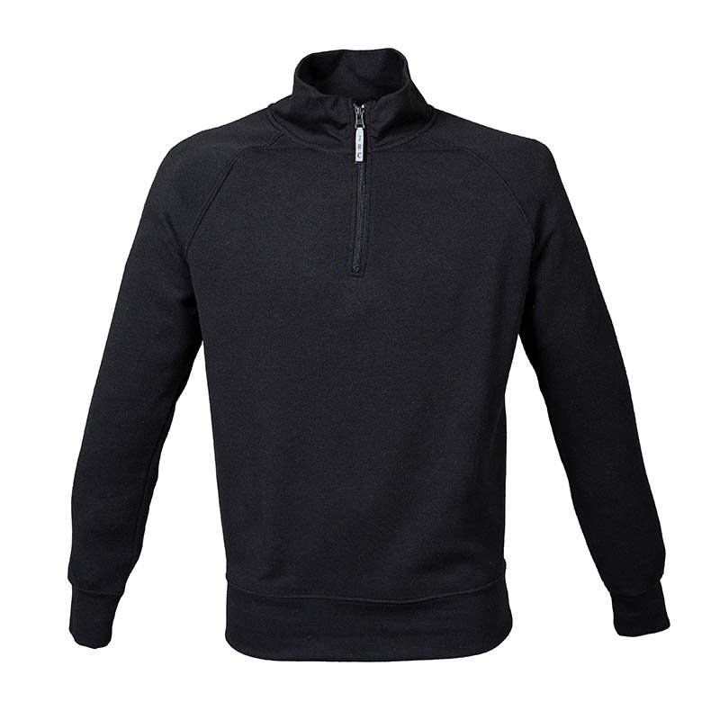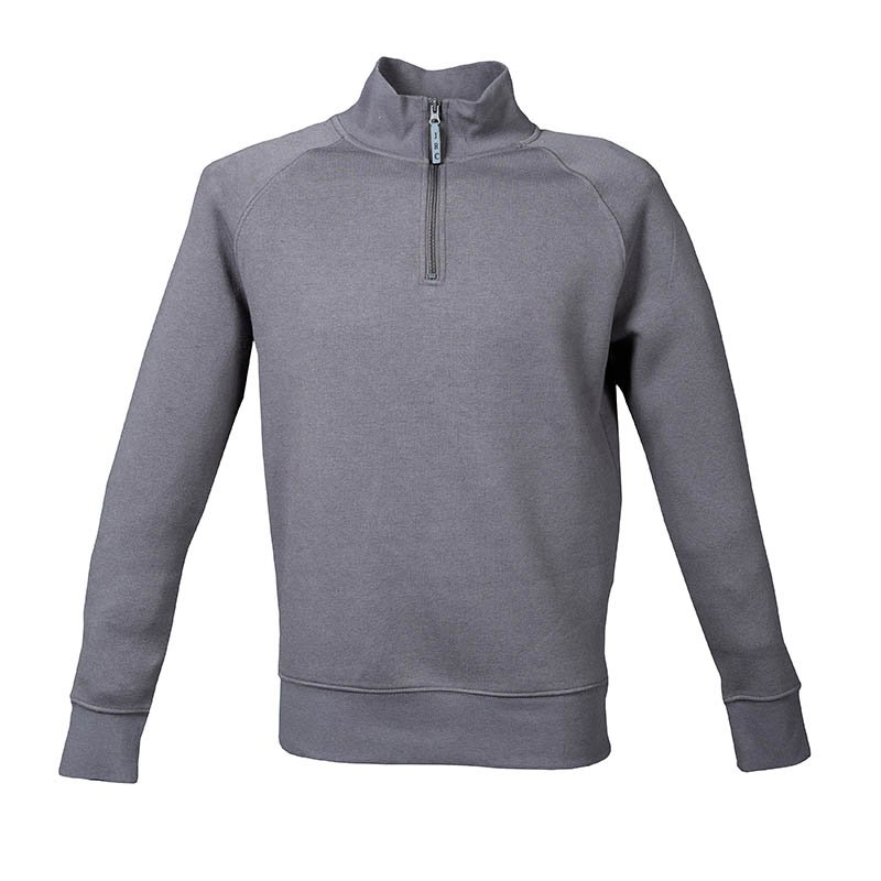 80 % bavlna / 20 % polyester (skvrnitá šedá: 79 % bavlna / 20 % polyester / 1 % viskóza.Úprava LSF (Low Shrinkage Fleece) flís s malým smršťováním.3vláknový česaný flís v česané bavlně.Vsazené kontrastní rukávy.Zip u krku s barevně sladěným plastovým zipem.Kontrastní podšití u průkrčníku (Oxfordská šedá pro všechny barvy, s výjimkou hlavního dílu v Oxford šedé barvě a skvrnité šedé barvě, kde je krk podšitý námořnickou modrou barvou).Žebrované manžety a lem.Certifikace v souladu s STANDARD 100 od OEKO-TEX®N° CQ1007/7, IFTH.
