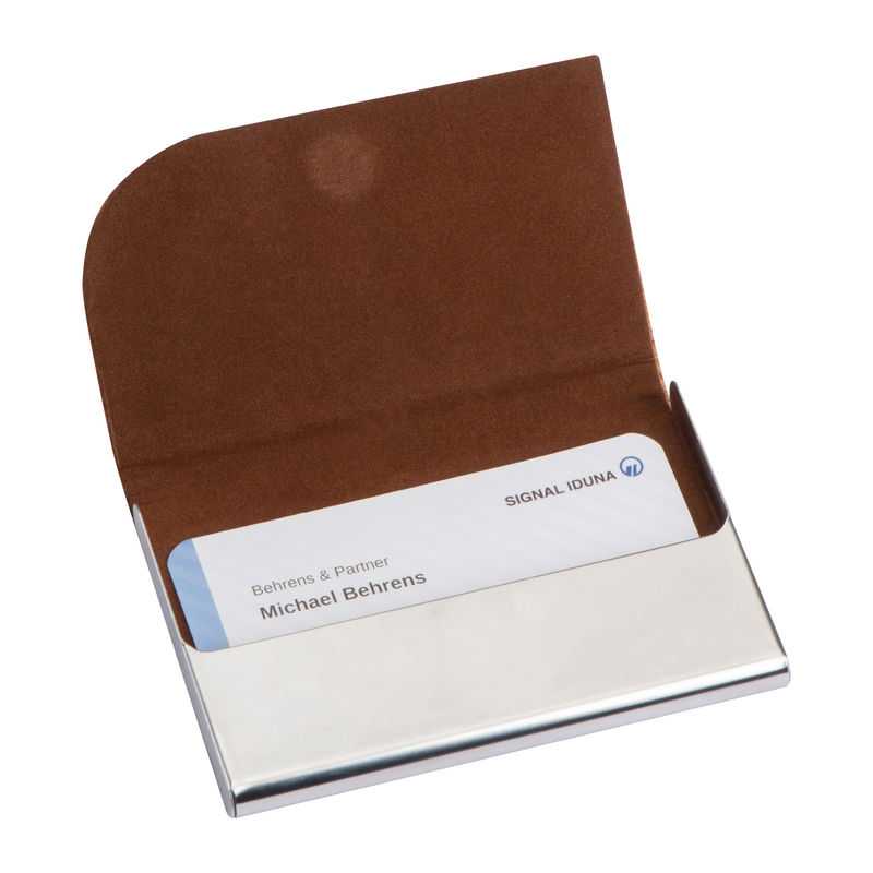 Good contacts are only really good if you present yourself to them in a powerful and shiny way. Our business card holder follows your corporate identity and your sense of style. Choose your favorite from strong colors.PU leather imitation, Stainless steel, black, for approx. 20 business cards - 250g/m2