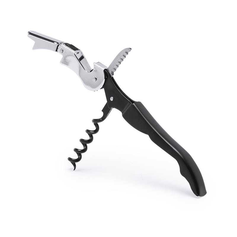 Kovový číšnický nůž s otvíračem láhví, rezačkou folie a vývrtkou a 2 úrovněmi zvednutí.