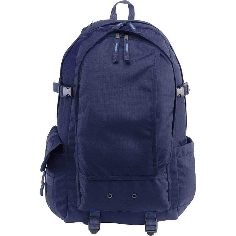 Ripstop (210D) explorer backpack with two large, zippered compartments and two side pockets.