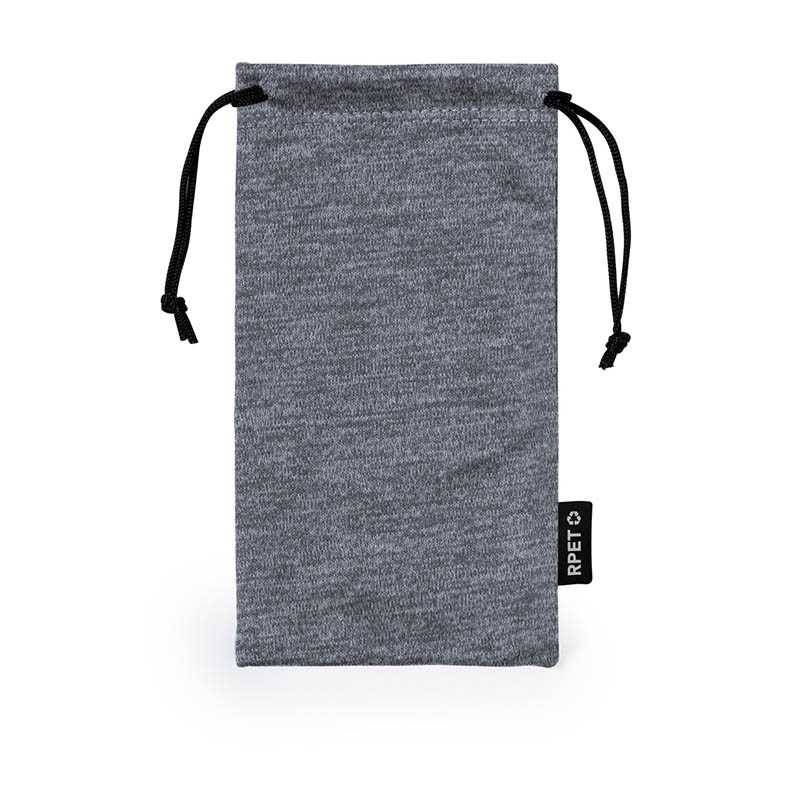 NOVINKA 2025. Eyewear pouch in soft RPET microfibre.Available in a wide range of fun colours, with self-closing strings and RPET label. RPET material is made from recycled plastic, thus promoting the reuse of plastic waste and helping the sustainability of the planet.