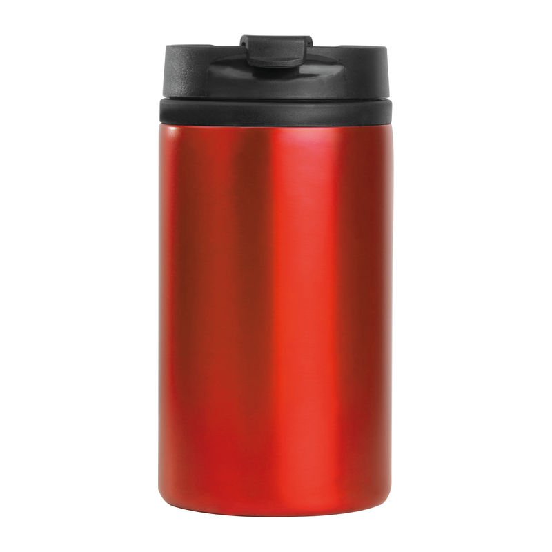 Moderní kovový termohrnek s vysouvatelným pítkem, o objemu 250 ml. Vrchní část lze odšroubovat. Způsob potisku gravírování.