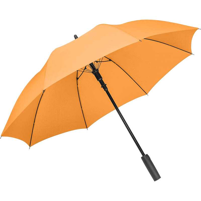 Convenient automatic function for quick opening, high-quality Windproof PLUS system for maximum frame flexibility in stormy conditions, flexible fibreglass ribs, higher corrosion protection thanks to black galvanisation of the steel shaft, Soft-Feel handle with integrated pushbutton and promotional labelling option.