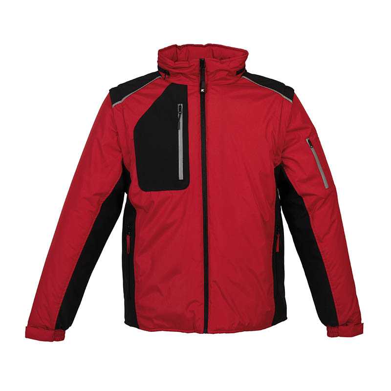 Heavy duty 2-way zip with interchangeable colour zip pulls Contrast twin needle stitching and bar tacks Fashion shaped longer back panel 4 outer & 2 inner zipped pockets Quilted Polartherm ™ fleece lined Stud closing storm flap D-ring in LBP pocket Removable hood Taped seams Reflective detail Adjustable hem Stand up collar Hangtag Rugged look Hardwearing Ready to brand- tag free Corporate managers jacket styling