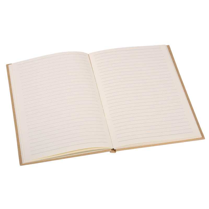 Environmentally friendly notebook made from recycled material with approx. 70 sheets of cream lined paper, cardboard cover and strong spiral bound. Incl. blue ink ballpoint.