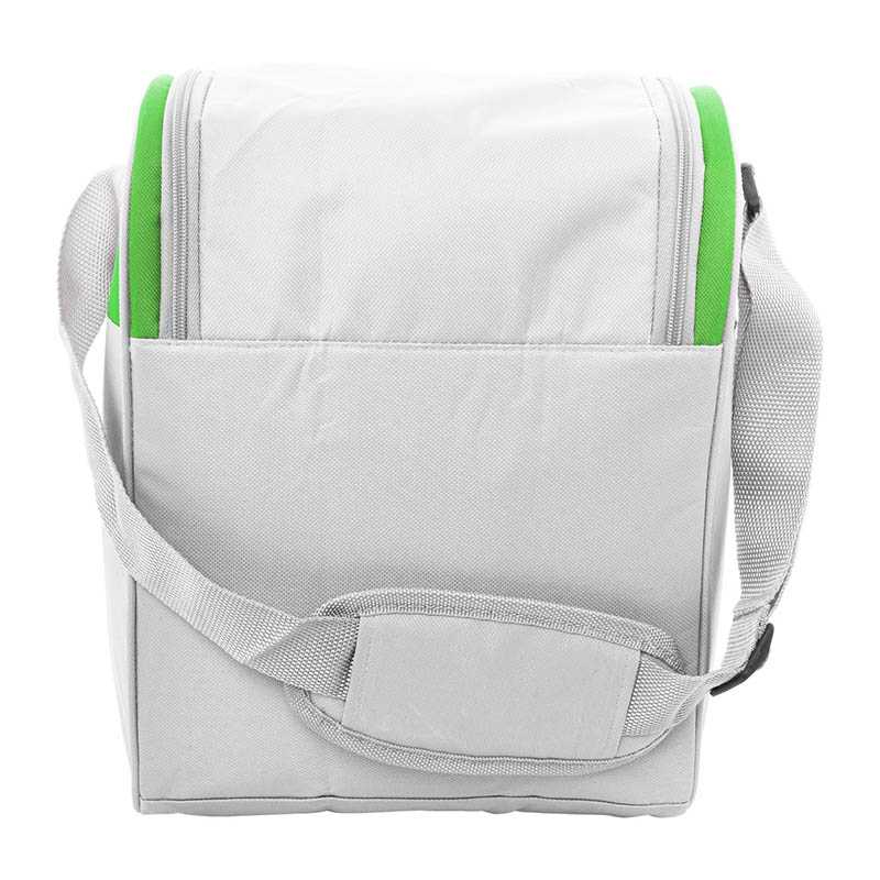 Chladicí taška z 600D RPET polyesteru s PEVA výstelkou, se 2 přihrádkami na zip a nastavitelným ramenním popruhem. S výrazným štítkem RPET.