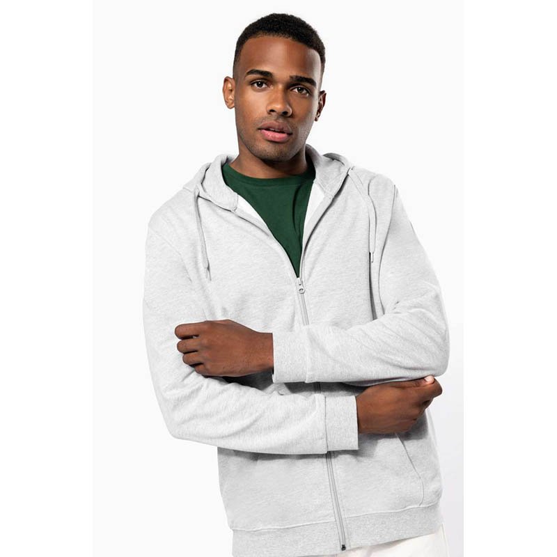 80 % bavlna / 20 % polyester.Česaný flís.Vsazené kontrastní rukávy.Zapínání na nylonový zip.Kapuce s podšívkou s barevně sladěnou stahovací šňůrkou.Klokaní kapsy.Žebrované manžety a lem.Certifikace v souladu s STANDARD 100 od OEKO-TEX®N° CQ1007/7, IFTH.U výrobků v barvách tmavě šedá se mohou objevit rozdíly v barevných odstínech.
