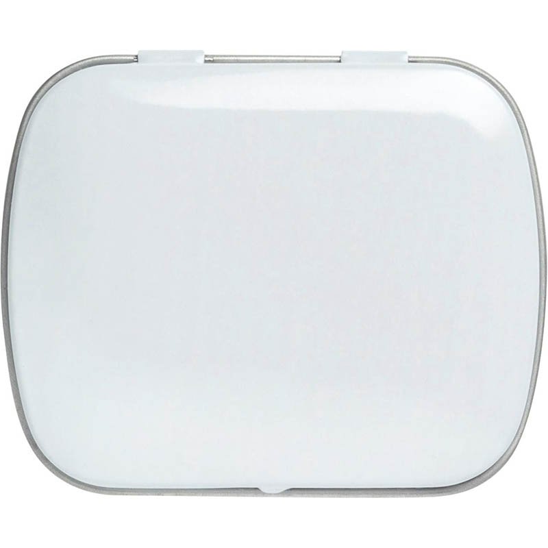 Obdélníková kovová krabička s cca. 25 gramů mmentolových bonbónů.