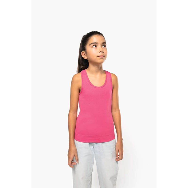 100 % bavlna.1x1 žebrování.Střih s vykrojenými průramky vzadu.Úprava dvojitou jehlou.Certifikace v souladu s STANDARD 100 od OEKO-TEX®N° CQ1007/7, IFTH.