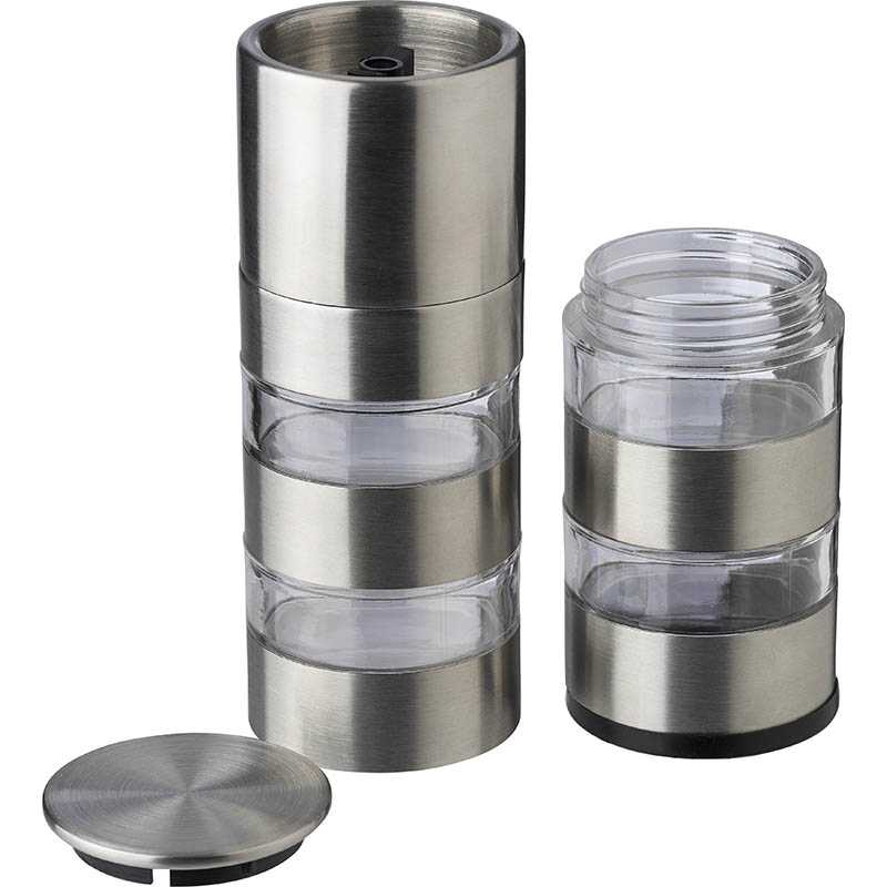 Okořeňte svůj vztah s Vaším partnerem s tímto mlýnkem na sůl a koření 2v1. Mlýnek je kombinací nerezové ocele a plastu a má dvě nastavitelné keramické čepele. Lehce se používá na drcení hrubé soli a čerstvého koření.