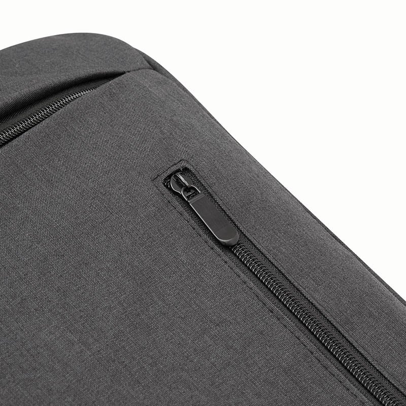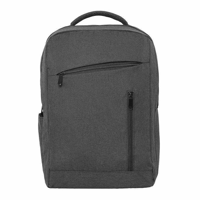 Polyester (600D + 300D) backpack with zippered front pocket and adjustable shoulder straps. Including USB port at the side.