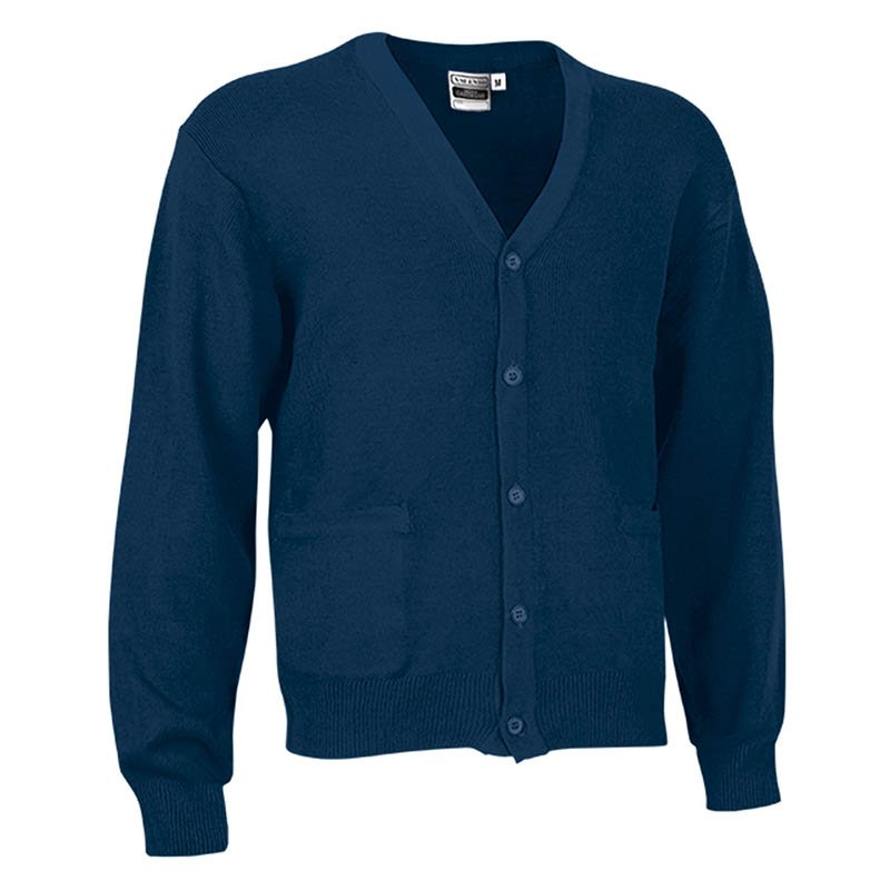 Knitted Cardigan with Pockets. Made of 100% acrylic knitted fabric, for a soft and comfortable feel with excellent breathability and optimal thermal insulation. Ribbed V-neck, wide, comfortable and stylish, matching button front closure for a more personalised fit.Elasticated ribbed waistband and cuffs for comfortably fitting.Two front waist pockets for convenient storage. Suitable marking methods: embroidery, stitching, and more. Ideal as workwear, corporate uniform and school uniform.