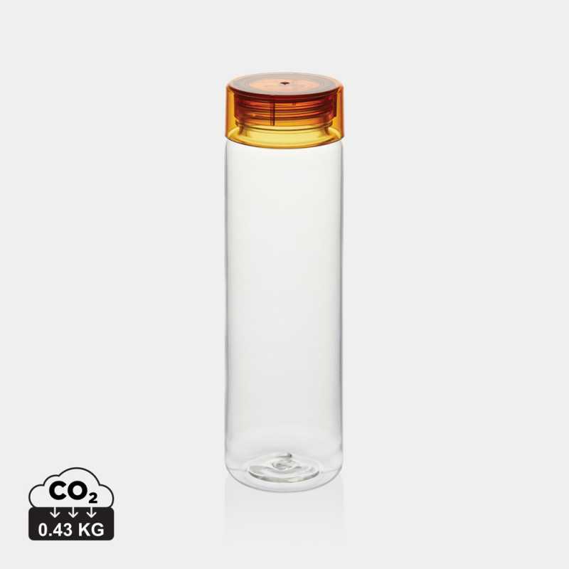 Stylová minimalistická láhev na vodu vyrobená ze GRS recyklovaného PET plastu. GRS (Global Recycle Standard) je globální standard, který umožňuje ověřit použití recyklovaného materiálu v produktu napříč celým dodavatelským řetězcem. Celkový podíl recyklátu dle váhy produktu: 98 %. Velký otvor pro snadné čištění. Pouze pro ruční mytí a pro studené nápoje. Bez BPA.