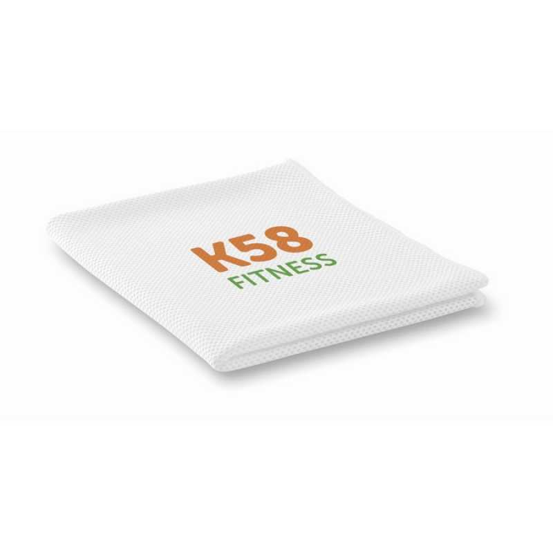 Sportovní ručník, dobře absorbuje vodu. 55% polyamid a 45% mikrovlákno.