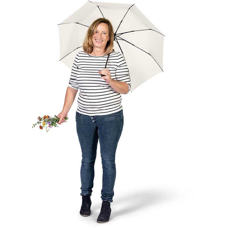 Convenient automatic open/close function for quick opening and closing, high-quality Windproof PLUS system for maximum frame flexibility in stormy conditions, comfortable Soft-Feel handle with integrated push-button, elastic loop and promotional labelling option