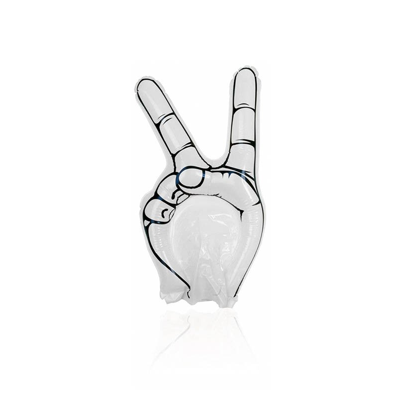 NOVINKA 2025. Fun animation hand of victory in resistant, colorful LDPE material. Reusable and with inflation valve included.