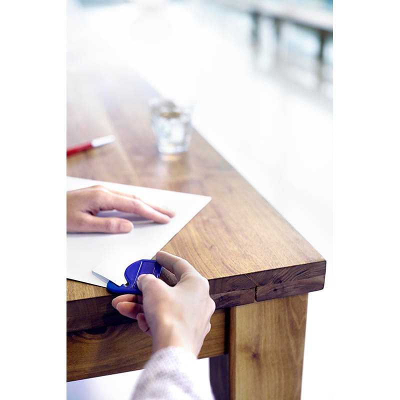 Plastový otvírač na dopisy s kovovým nožíkem, v bílé barvě. Takto bude otvírání dopisů opravdu jednoduché! Způsob potisku tamponový tisk.