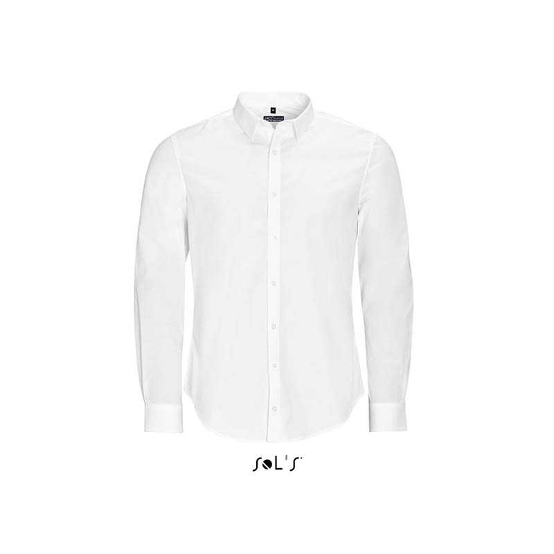 Kvalita.97 % bavlna, 3 % elastan.Styl.Úzký střih.Dlouhé rukávy.Moderní klasický límec.Manžety s 2 knoflíčky a rozparkem.Léga s 8 barevně sladěnými knoflíky.2 záševky na zadní straně pasu.