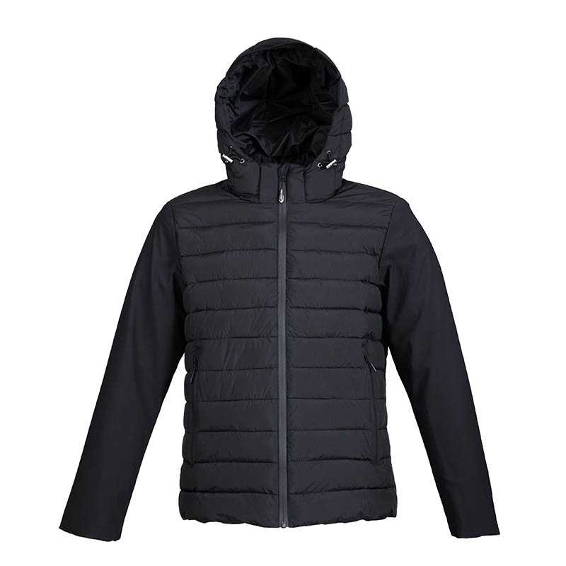 lehký hřejivý materiál členěný prošíváním, celopropínací reverzní spirálový zip s krytkou brady, kapuce s podšívkou, kapsy s reverzním spirálovým zipem, vstup pro branding v podšívce zadního dílu, lemování elastickým proužkem, kontrastní prvky (vyjma barv