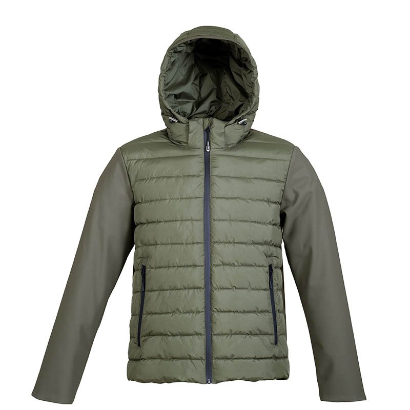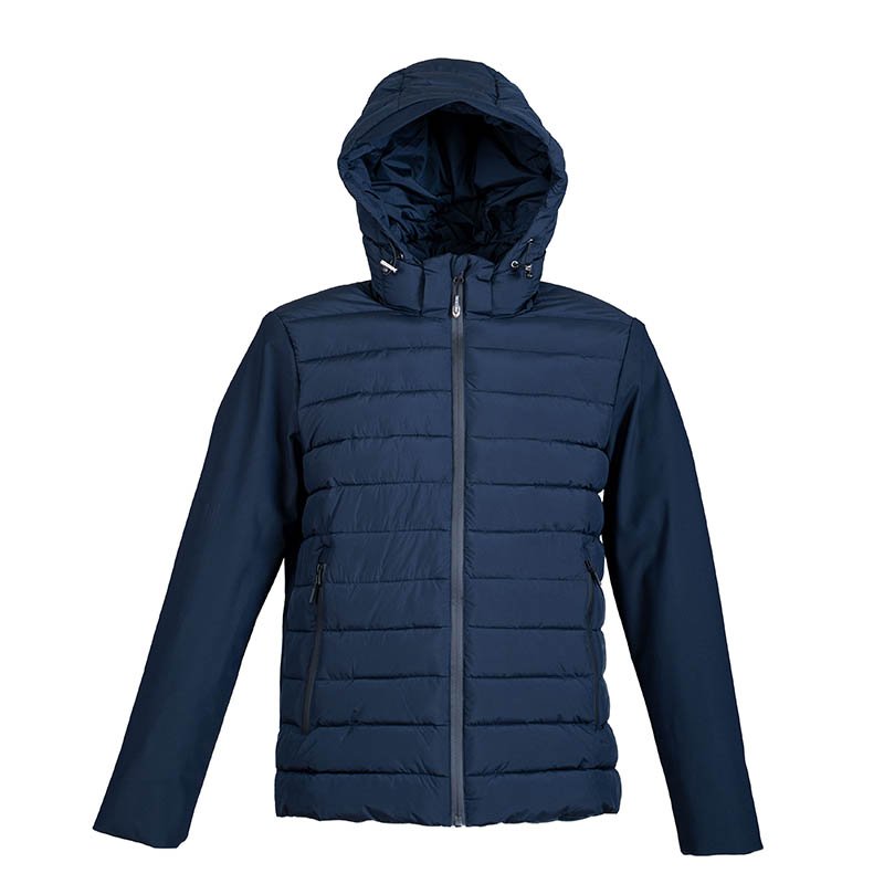 lehký hřejivý materiál členěný prošíváním, celopropínací reverzní spirálový zip s krytkou brady, kapuce s podšívkou, kapsy s reverzním spirálovým zipem, vstup pro branding v podšívce zadního dílu, lemování elastickým proužkem, kontrastní prvky (vyjma barv