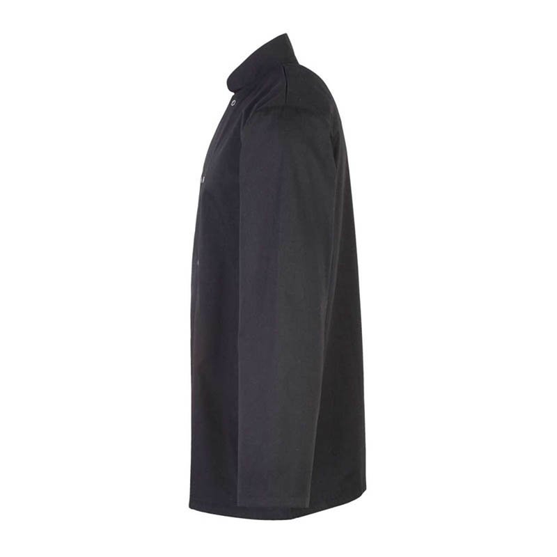 Pocketless Long Sleeve Lab Coat.Made of a sturdy cotton twill fabric blended with polyester for strength and durability.A wide V-neck shirt collar, for optimal comfort and a refreshing feel, and elasticated cuffs that fits comfortably. Snap button front closure and a waistband with sewn-on tape at the back for added comfort. An inner velcro pocket for convenient storage.Suitable marking methods: screen printing, vinyl application, transfer printing, embroidery.Ideal as workwear and food industry uniforms.