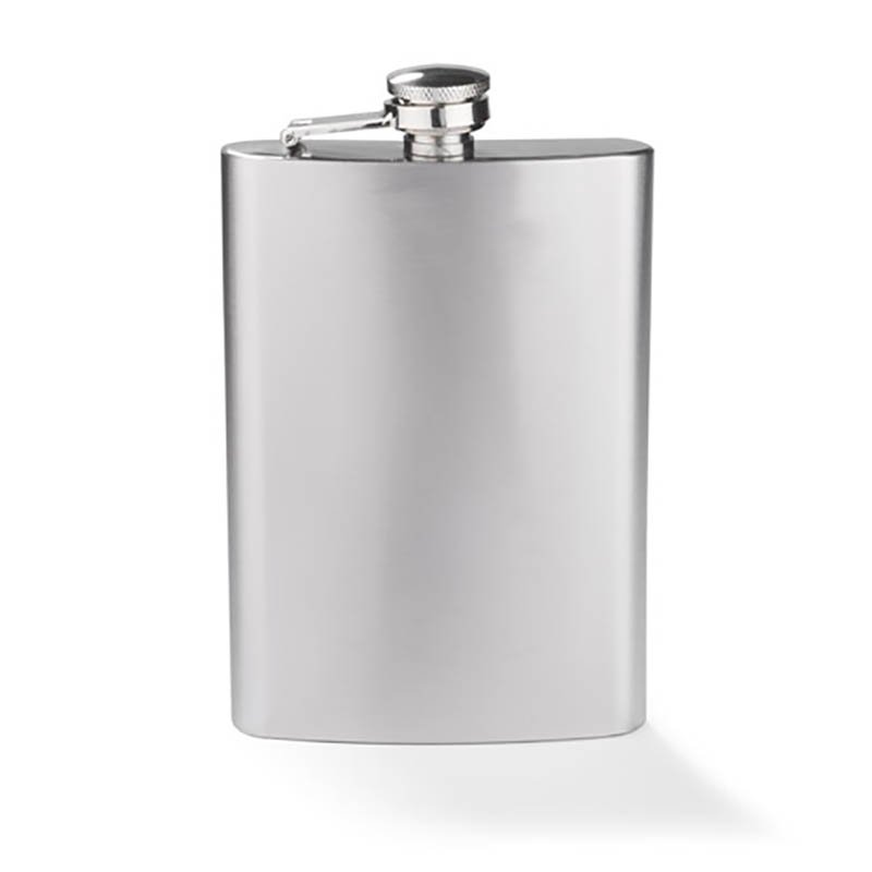 Nerostné ocelové flaška na líh o objemu 240 ml se bezpečným uzávěrem. Logo může být vyryto na povrchu článku.