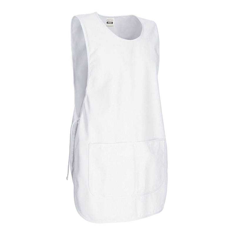 Adjustable Work Tabard with Pocket. Made of a sturdy cotton twill fabric blended with polyester for strength and durability.Wide crewneck for optimal comfort and a refreshing feel.Rounded corners at the bottom for extra comfort, hemmed seams all around for added strength and durability, adjustable sides with a drawstring for a better fit. A spacious compartmentalised front pocket for convenient storage.Suitable marking methods: screen printing, transfer printing, embroidery, vinyl application. Ideal as workwear, hospitality clothing, beauty uniforms and cleaning uniforms.