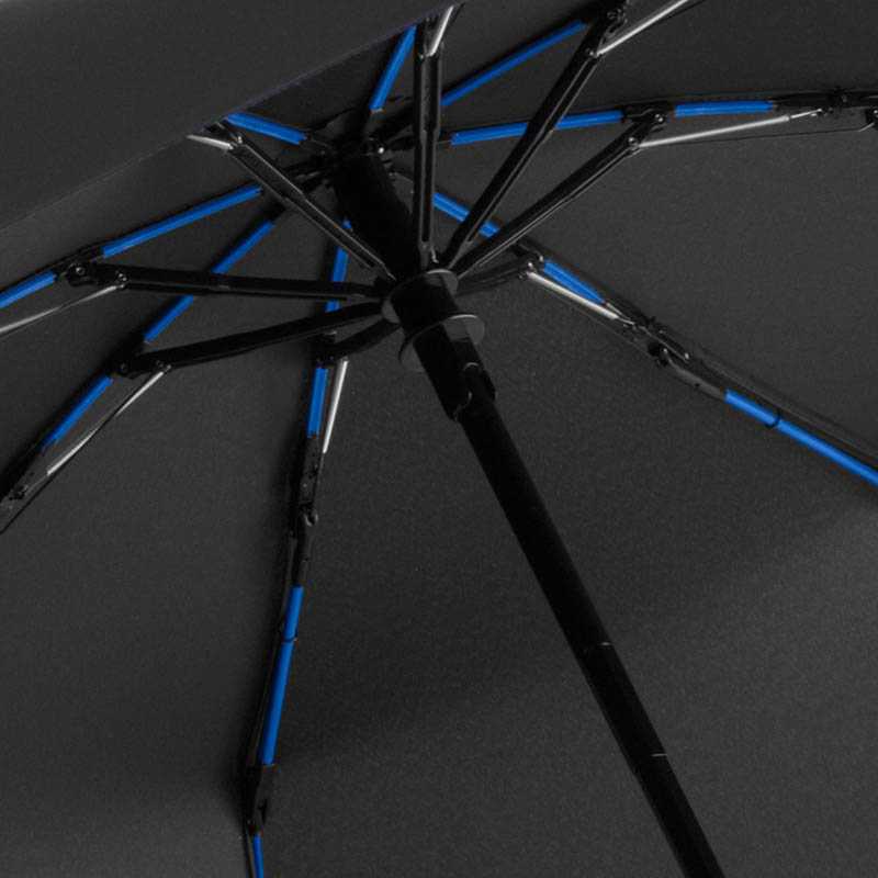 Convenient automatic open / close function for quick opening and closing, high-quality Windproof PLUS system for maximum frame flexibility in stormy conditions, striking cover decoration with coloured panel seam pipings, matt / shiny contrasting Soft-Feel handle with integrated push-button and promotional labelling option, coloured handle strap, sleeve with press button and coloured piping. Also available as midsize umbrella (art. 4399).