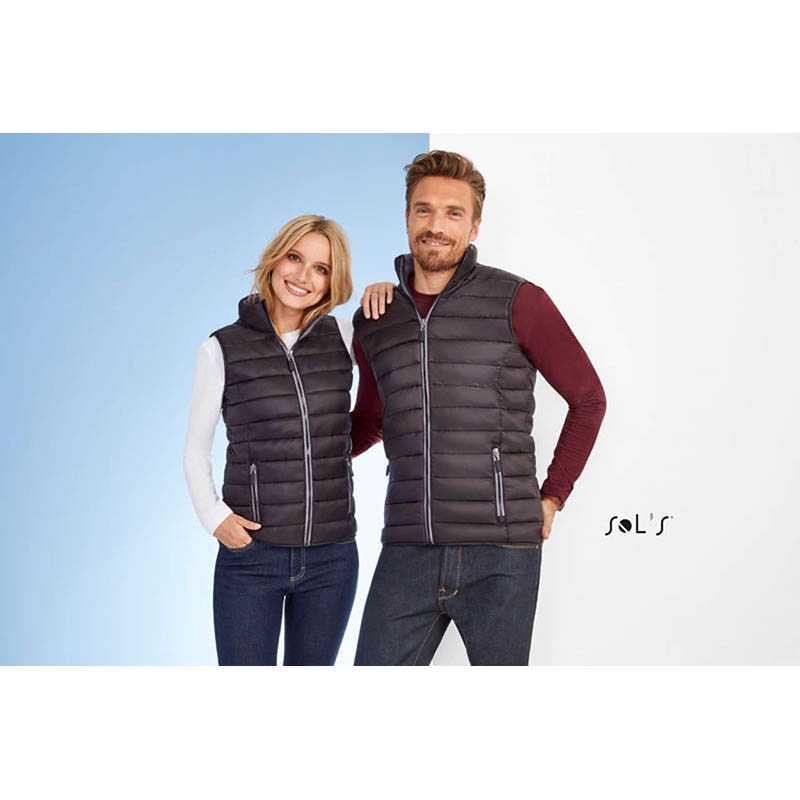 Soft nylon waistcoat - Outshell in 100% polyester, 300T, cire - Lining in polyester - Soft polyester padding - Elasticized fabric at the arm-holes - Elasticized fabric at the bottom - Two pockets with zip - Vertical stiching on the sides