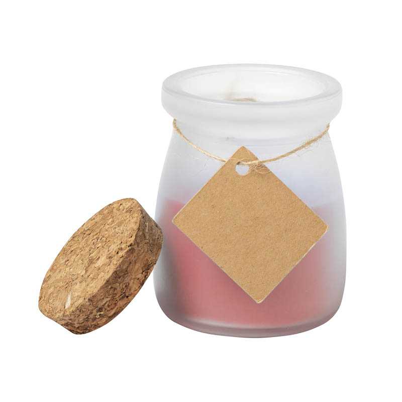 Glass candle with plant-based wax and a bamboo lid. The candle contains mainly plant-based wax (carnauba wax) and has a burning time of around 20 hours. Four scents depending on the glass colour: cinnamon (red), vanilla (white), sandalwood (black), and ja
