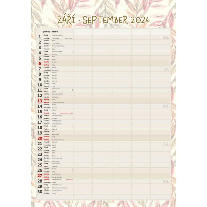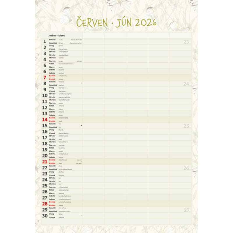 Formát kalendáře: 31,5 x 63 cm . Kalendárium: české měsíční jmenné . Rozsah kalendáře: 14 listů . Vazba: Twin-wire (se spirálou) . + políčko pro každého z rodiny