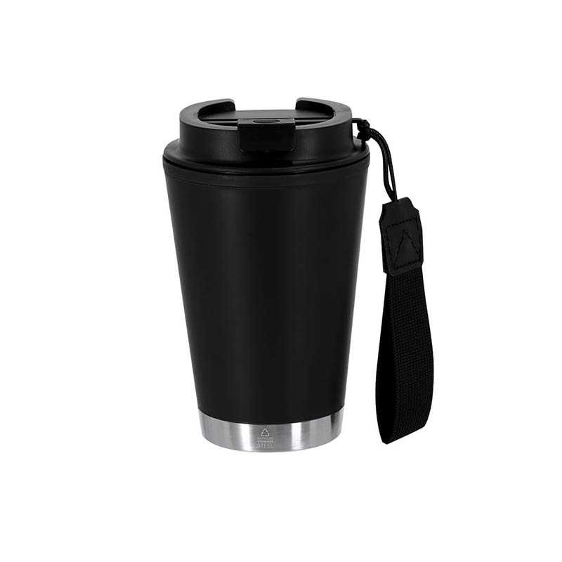 Nerezový cestovný pohár (90% recyklovaná nerezová oceľ) s dvojitou stenou a matným povrchom. PP viečko je nepriepustné a obsahuje PU a PET držadlo na ľahké prenášanie. Kapacita až 460 mL. Dodávané v darčekovej krabičke z kraftového papiera.