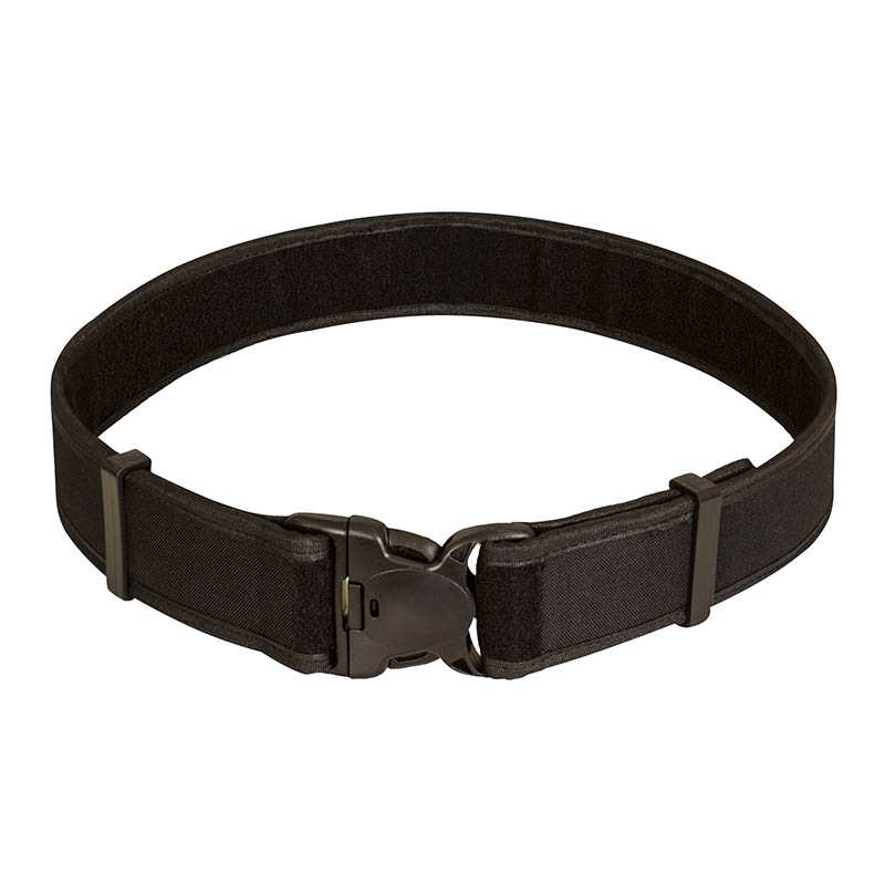 Wide Outer Tactical Belt. Made with outer waterproof fabric and adaptable inner foam for greater comfort, inner side with velcro to attach the inner belt. Plastic buckle with triple safety closure for a better fit. Contour with ribbed tape that reinforces its structure, ends with velcro for comfortable adjustment and a slider for a better hold of the excess strap. Inner reinforcement with semi-rigid sheet adaptable throughout the perimeter that distributes the weight of the accessories over the entire belt. Suitable marking methods: pad printing, resin drop. Ideal for security uniforms and to be worn over the inner belt, RALPH or ALBERT models.